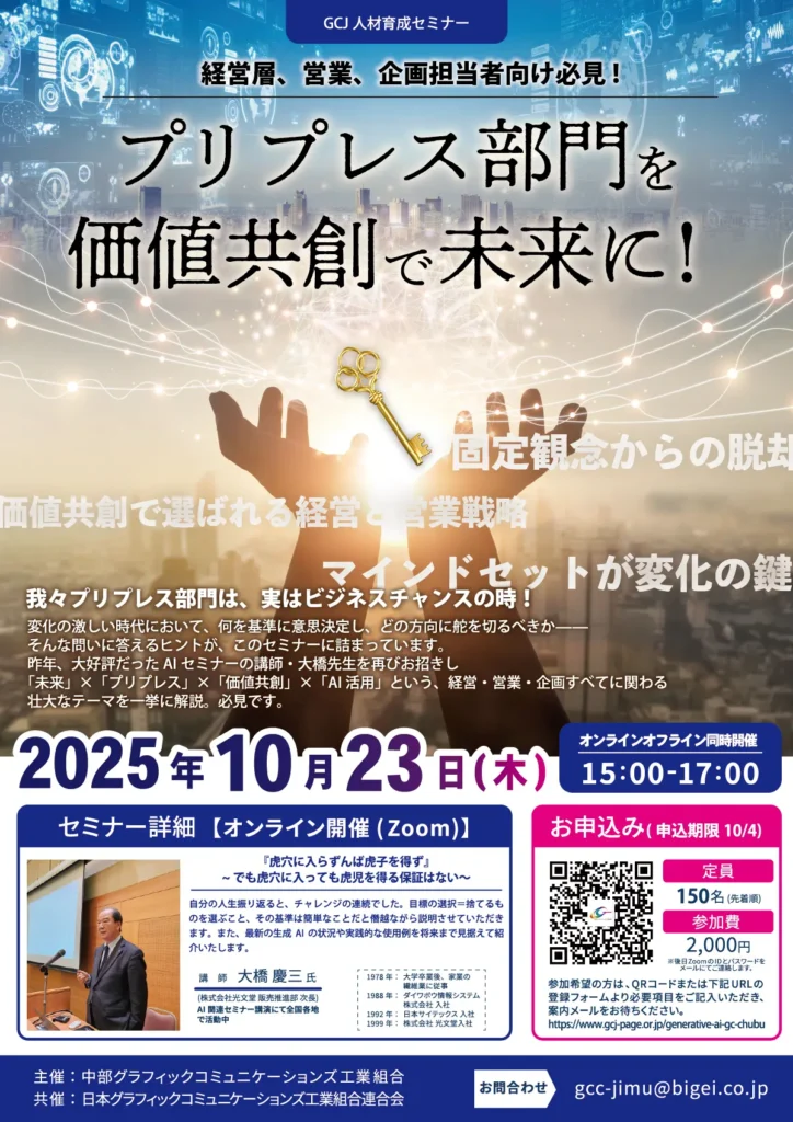 「未来」×「プリプレス」×「価値共創」×「AI活用」という、経営・営業・企画すべてに関わる壮大なテーマを一挙に解説。必見です。