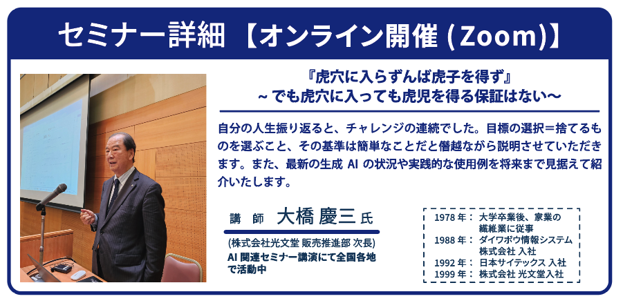昨年、大好評だったAIセミナーの講師・大橋先生を再びお招きし