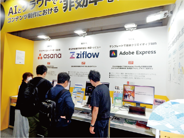 広報・マーケティング業務の課題に対してさまざまなソリューションを提供している株式会社Too(東京都港区)は、タスクやプロジェクトを一元管理するためのワークマネジメントツール「Asana」と、さまざまな制作物の赤入れや承認フローを効率化するオンライン校正ツール「Ziflow」を出展していた。