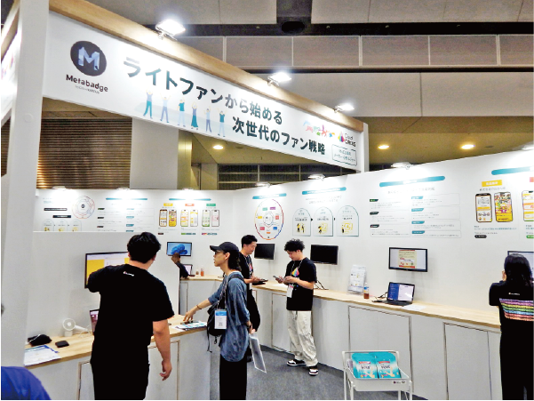 ブースではファンマーケティングツールの「Metabadge(メタバッジ)」も紹介されていた。「WebサイトやSNSにアクセスされたお客様に、診断やクイズ、投票、アンケート調査、ARなどのユーザー参加型企画を提供し、CVR(コンバージョン率)改善やUGC(ユーザー生成コンテンツ)を創出していくものです。これまでの短期的な販促施策と並行して、長期的なファンの獲得と育成を支援するツールです」(ブース担当者)とのことだ。