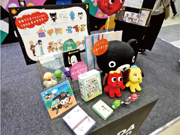 そのデザイン力を活かしている企業のひとつに、株式会社京田クリエーション(大阪市西区)がある。同社はイラストレーターと絵本作家が社員として在籍しているのが特徴だ。イラスト制作はもちろん、ディレクター、デザイナー、コピーライターも揃っているため、イラストとデザインを組み合わせた企画・制作を一貫して請け負っているという。ブースでも数多くのキャラクターデザインの販促品や印刷物を出展していた。