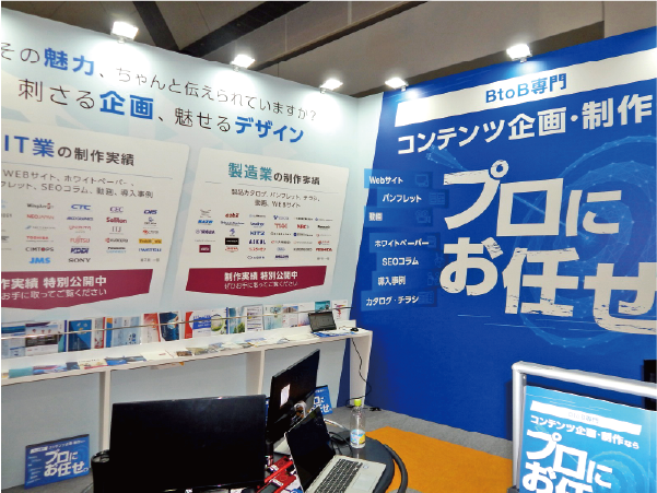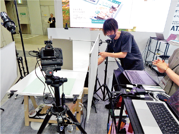 同展では動画制作会社も出展していた。高島屋グループの総合広告会社、株式会社エー・ティ・エー(東京都中央区)は、動画制作をアピールしていた。ブース前面に小さな撮影スペースを設け、商品のカメラ撮影のデモンストレーションを行っていた。