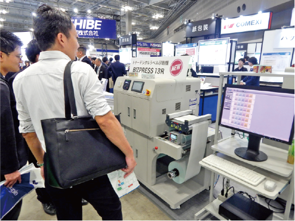 パッケージ分野も小ロット・多品種化のニーズが進んでいる。制作現場では小ロットや短納期に対応する動きが顕著で、デジタル印刷機の活用に注目が集まっている。ブースでは「必要な時に」「必要な分だけ」の生産を可能にするデジタル印刷機のメリットや活用事例を紹介した。