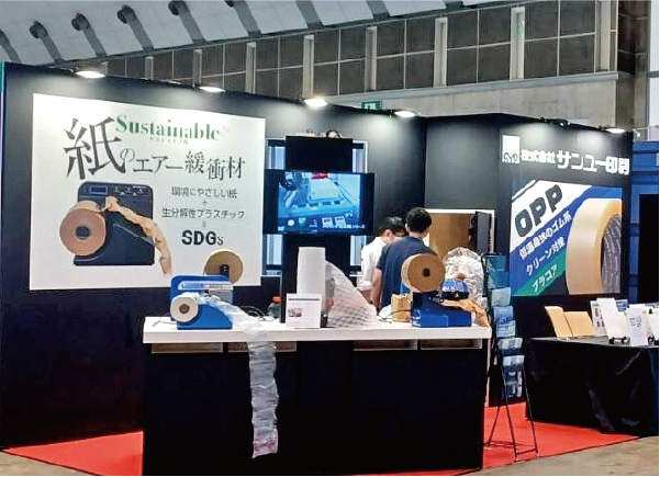 トキワ印刷㈱が製造・開発し、㈱日進堂印刷所が販売する植物性由来の原料を配合した環境配慮型の発泡緩衝材「ワンダーエコシリーズ」を出展した。自然素材を活かして製造されており、軽量かつ断熱性にも優れている。緩衝材としてだけでなく、保冷箱などさまざまな用途に利用できるのが特長である。「バイオマスマーク50」認定商品のため、環境問題に関心を寄せる顧客に対して訴求できる緩衝材である。