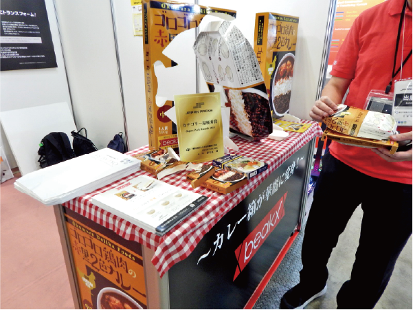 食品・飲料メーカー向けラベル・包装資材、ラベラー機を出展し、製品の付加価値向上や現場の課題解決を支援することを訴求。パッケージについては、デザインから製造までワンストップで提供することをアピールし、オリジナル制作の相談・依頼を受けていた。