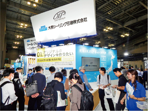 大阪シーリング印刷㈱は、「クリエイターが想いを形に」を出展テーマに掲げ、高透明ラベルや指紋が目立ちにくい封かんラベル、環境対応資材など、オリジナルデザインを可能にする製品やソリューションを出展した。