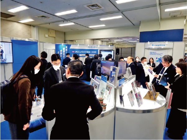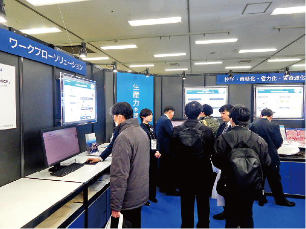 「工場ソリューションゾーン」「自動化ゾーン」において、人手不足やコスト上昇に対応する工程自動化・可視化技術を提案。人手不足や2030年問題に対応する務効率化、および生産現場のDXを支援する提案を行った。また、印刷会社の現場で自動化ソリューションを導入した事例も紹介した。