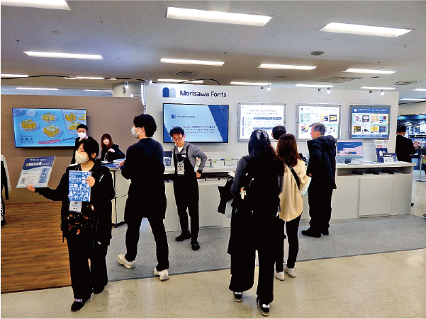㈱モリサワは、デスクトップフォント・Webフォントともに新プランはじめ、より便利に使えるサブスクリプションサービス「Morisawa Fonts」や、新書体をはじめとする各種フォントソリューション、営業担当などビジネスパーソン向けの研修“「伝わる」資料デザインプログラム”などを提案した。